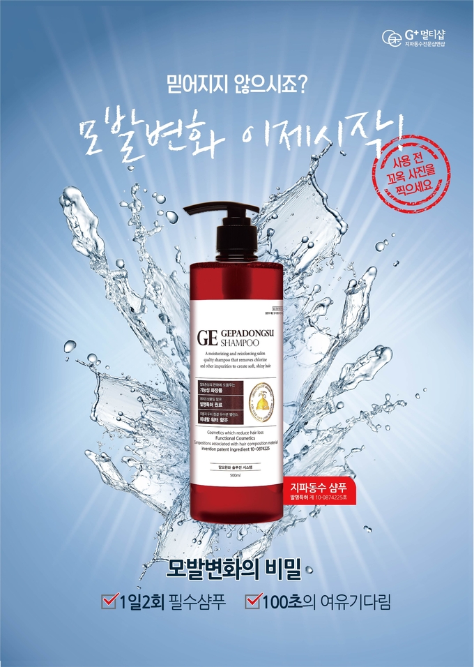 지파동수 샴푸는 2018년 8월에 발모촉진용 조성물 특허성분을 함유한 초기 모델로 출시하여 탁월한 발모 효과를 보여 별다른 광고 없이 사용자 입소문만으로 히트한 상품이다.