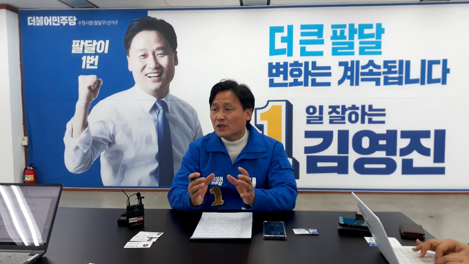 김영진 국회의원(더불어민주당 수원시을, 팔달구)이 재선에 도전하며 강조한 말이다. 김 의원은 스스로를 팔달구의 행복지수를 바꾼 사람으로 자부했다.