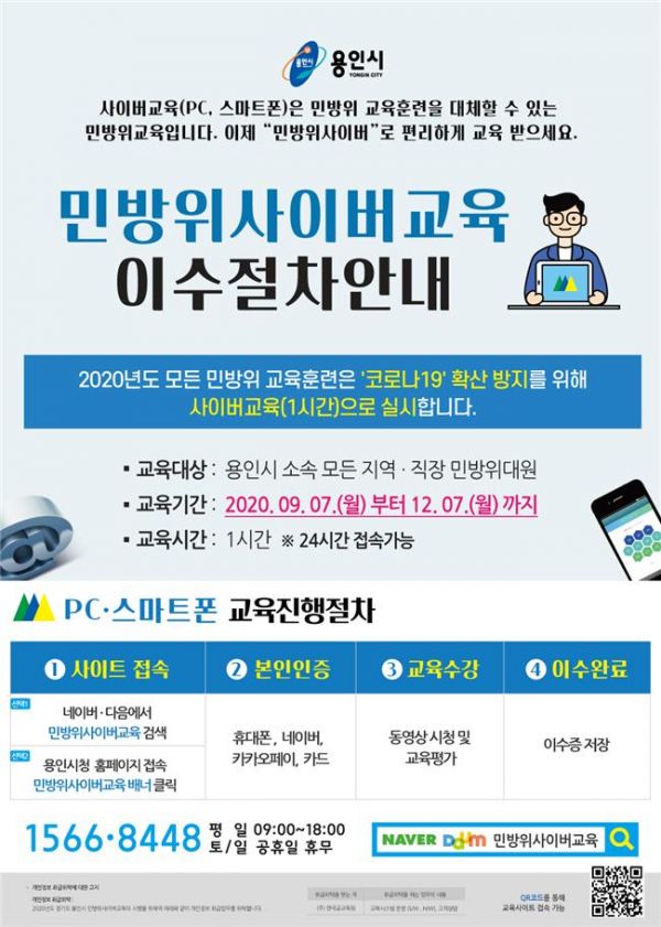 【뉴스라이트 = 조용은 기자】 용인시는 27일 코로나19 확산 방지를 위해 올해 민방위 대원 집합교육을 사이버 교육으로 대체한다고 밝혔다.
