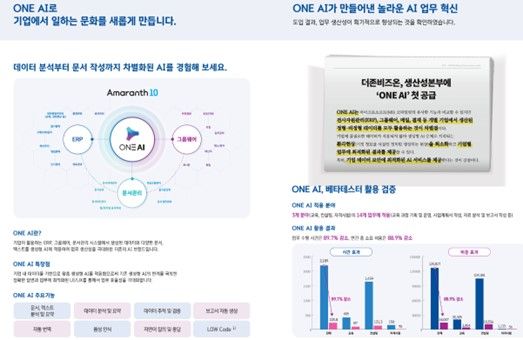 더존 ERP 아마란스10(Amaranth 10)은 문서 작성부터 분석, 번역, 요약, 그리고 이미지 생성에 이르기까지 다양한 업무를 간소화하고 자동화한다. 이를 통해 기업은 업무 효율성을 대폭 향상시킬 수 있다. 예를 들어, 회의 내용을 실시간으로 번역하고 요약하여 보고서 형태로 제공하거나, 전자결재 본문과 첨부된 문서의 내용을 비교하여 오류를 검증하는 등의 기능을 제공한다.