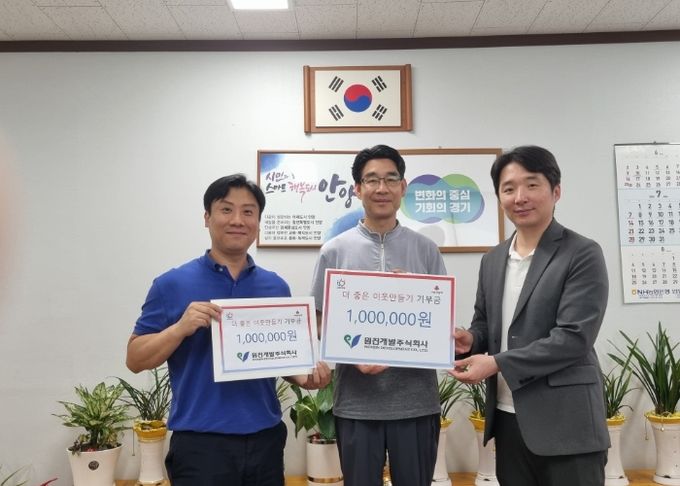 【뉴스라이트 = 이양지 기자】 안양시는 지난 10일 관내 폐기물수집 및 처리업체인 ㈜원진개발(대표 원광희)이 안양2동과 석수1동에 이웃돕기 성금 각 1백만원(총 2백만원)을 기탁했다고 11일 밝혔다.