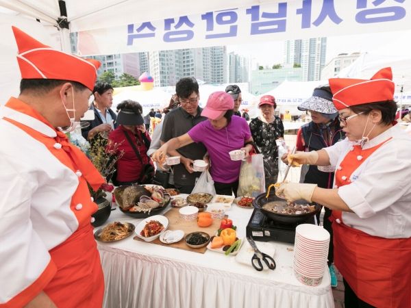 같은 시간 무대 아래에 설치된 20여 개의 테이블에선 남동구 각 동에 거주하는 주민들이 이혜정 요리연구가의 사회에 따라 함께 요리를 진행한다.