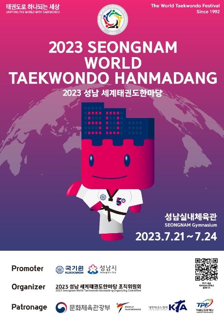 대회 포스터는 성남시 승격 50주년 및 세계태권도한마당 개최를 기념하는 캐릭터 ‘탄(TAN: Taekwondo Assembles Nations)’을 메인으로 지구촌 평화, 화합 및 통합을 상징하는 밝고 친근감 있는 이미지를 표현했다.