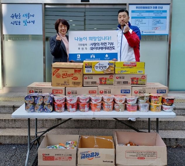라면 기부는 새해를 맞이해서 와이티에이태권도와 원생들이 어려운 이웃을 돕기 위해 자발적으로 가져온 식료품으로 준비했으며, 기부된 물품은 영통2동 독거노인, 한부모 등 취약계층 가정에게 전달할 예정이다.