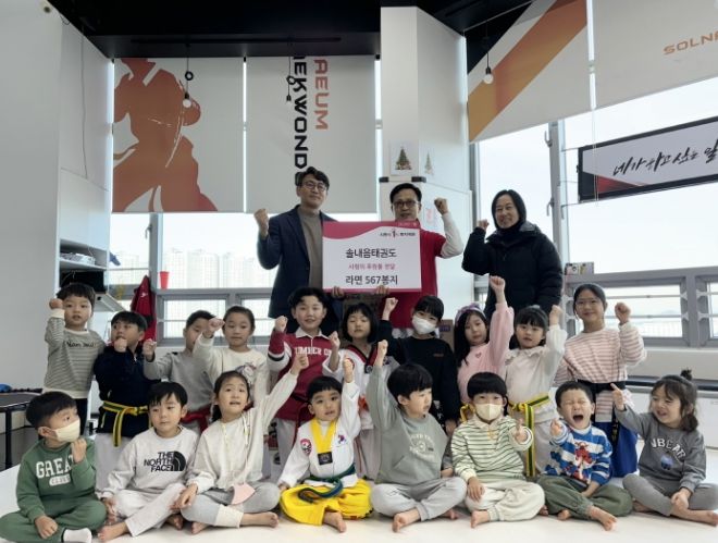 이번 후원은 지난해 12월 한 달간 원생들과 뜻을 모아 사랑의 라면 트리 행사를 진행해 이뤄졌다. 사랑의 라면 트리 행사는 원생, 학부모와 함께 뜻을 모아 지역에 따뜻한 마음을 전하고 아이들에게 꾸준히 나눔을 실천하는 기회를 제공하기 위해 마련한 것으로, 연세대 솔내음태권도장에서 매년 시행하고 있다.