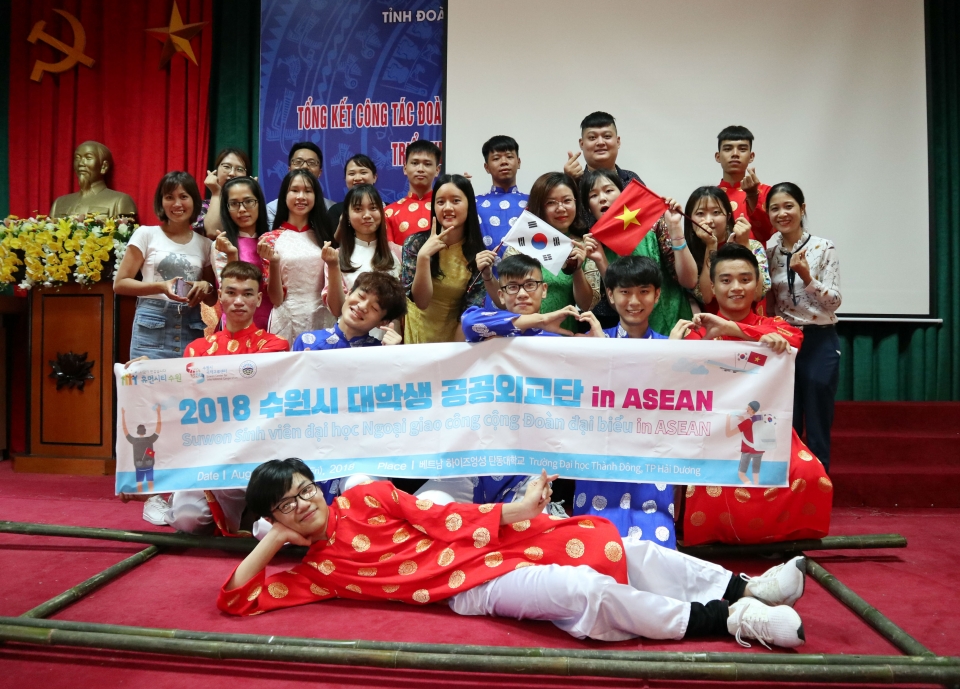 【뉴스라이트】 (재)수원시국제교류센터(센터장 노만호)는 수원시 자매도시인 베트남 하이즈엉성과 인도네시아 반둥시에 「수원시 대학생 공공외교단 in ASEAN」을 파견해 오는 9월 1일까지 현지 대학의 한국어학과 학생들에게 한국어와 한국 문화 교육을 진행한다.