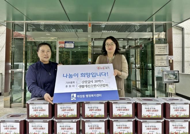 정진숙 파장동장은 “후원해주신 김장김치는 도움이 필요한 곳에 잘 전달하겠다”며, “지역사회의 소외계층을 위해 도움을 주시는 생활개선수원시연합회에 깊이 감사드린다”고 전했다.