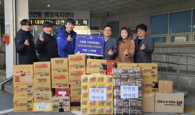 신천동 키즈펀태권도는 2013년 개원 이래 다년간 지역 복지관 등과 연계하여 후원을 이어오고 있다. 지난해 12월에도 수련생들과 뜻을 모아 신천동 행정복지센터에 라면 1,300여 개를 전달했고, 2023년 5월과 2024년 5월에는 가정의 달을 맞아 각각 백미 10kg 40포를 후원한 바 있다.