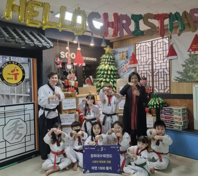 경희대수태권도는 매년 연말에 ‘우리의 라면이 사랑이라면’이라는 주제로 기부를 이어오고 있다. 올해도 십시일반 모은 라면과 함께 원생들의 따뜻한 메시지를 함께 전달했다. 이날 전달된 라면은 식사가 어려운 저소득층 가구에 전달될 예정이다.