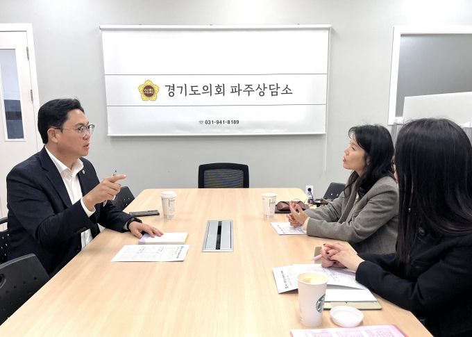 【뉴스라이트 = 조용숙 기자】 경기도의회 경제노동위원회 이용욱 의원(더불어민주당, 파주3)이 20일 파주상담소에서 경기도시장상권진흥원 북서센터 관계자들에게 현장 중심 소통을 바탕으로 한 효과적인 사업 추진을 강조했다.