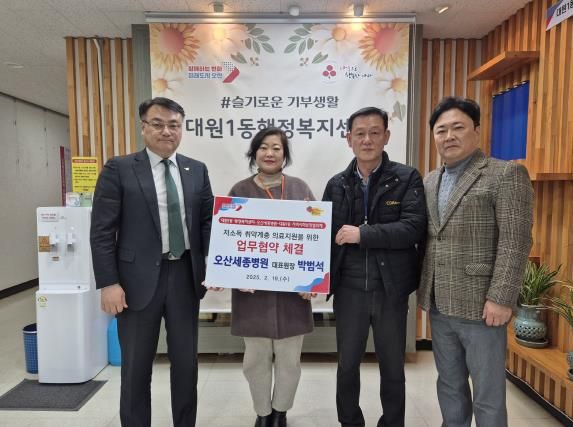 대원1동 행정복지센터에서 열린 협약식은 대원1동 행정복지센터, 대원1동 지역사회보장협의체, 오산세종병원 3개 기관이 협약에 참석했다.