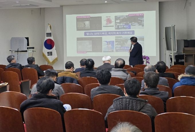 이번 교육에서는 배 재배 농업인들이 봄철 저온에 대비할 수 있도록 실질적인 방법을 제공하고 작물 재배관리의 중요성에 대해 강조했다.