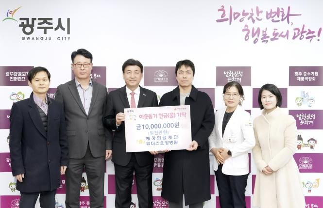 【뉴스라이트 = 김정민 기자】 해강의료재단 위더스요양병원은 지난 26일 광주시청을 방문, 어려운 이웃을 위해 사용해 달라며 성금 1천만 원을 기탁했다.