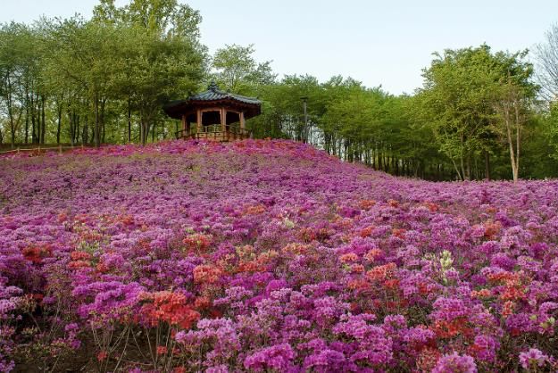 팔각정을 중심으로 사방에 펼쳐진 철쭉동산은 공원의 가장 큰 볼거리다. 봄의 색으로 피어난 동산 너머로는 시민의 휴식처 은계호수공원 뷰가 펼쳐진다.