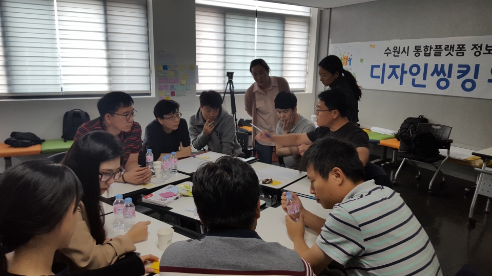수원시가 ‘디자인씽킹(Design Thinking) 워크숍’을 열고 ‘수원시 통합플랫폼’ 구축에 필요한 시민 중심 공공서비스 모델을 발굴했다.