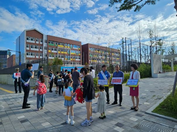 캠페인에서는 ▲어린이보호구역 내 교통안전 수칙 홍보 ▲불법 주·정차 차량 계도 ▲횡단보도 이용 방법 및 올바른 보행 습관 안내 ▲운전자 대상 신호 준수 및 서행 운전 홍보 등 다양한 안전 활동을 전개했다.