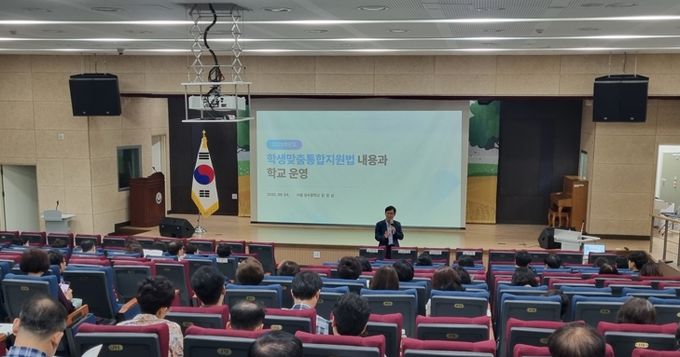이날 연수는 서울 성수중 김영삼 교장이 『학생맞춤통합지원법 내용과 학교 운영체계 구축』이라는 주제로 진행되어 ▲모든 학생의 교육받을 권리 신장 ▲학교와 교육지원청의 협력적 교육활동 운영 ▲지역 연계협력 체계 구축 등 단계별 강의를 통해 학생맞춤통합지원법 제정의 취지 및 지역 사회와의 긴밀한 연계가 핵심임을 강조했으며, 부서 간 협업의 중요성을 재차 확인하는 계기가 됐다.