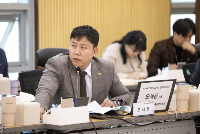 【뉴스라이트 = 조용숙 기자】 경기도의회 교육행정위원회 오세풍 의원(국민의힘, 김포2)은 12일 경기도교육청 남부연수원에서 열린 2025년 교육행정위원회 행정사무감사에서 미디어교육센터의 운영 실태를 점검하며 “학교 수업과 연계된 교원 연수와 정신건강 프로그램도 함께 강화해야 한다”고 강조했다.