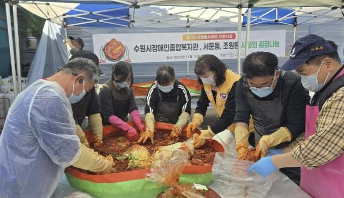 【뉴스라이트 = 조용은 기자】 수원시 장안구 조원1동은 지난 15일 사랑을 만드는 사람들 봉사회가 조원1동 취약계층을 위해 김장김치 10kg 50개를 조원1동 행정복지센터에 기부했다고 전했다.