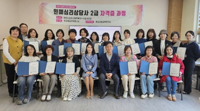 【뉴스라이트 = 김정민 기자】 이천시 농촌신활력플러스사업 추진단이 주최하고 예교상담교육연구소가 주관한 6기 이천신활력대학의 원예심리상담사2급, 푸드아트심리상담사2급 과정 수료식이 11월 12일과 15일에 개최됐다.