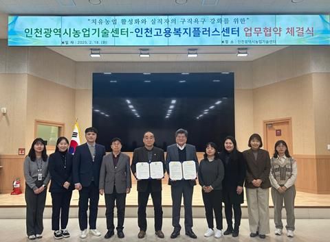 【뉴스라이트 = 이세현 기자】 인천광역시 농업기술센터는 2월 18일 인천고용복지플러스센터와 치유농업을 활용한 고용복지 서비스 제공을 위한 업무협약을 체결했다고 밝혔다.