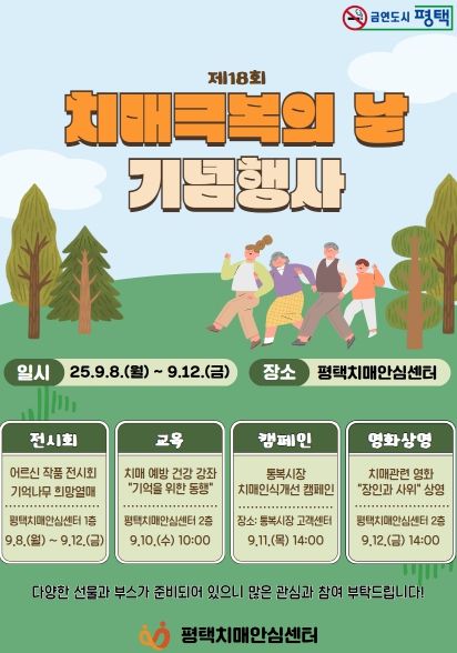 【뉴스라이트 = 박현서 기자】 평택시는 제18회 치매 극복의 날을 맞아 오는 8일부터 12일까지 치매 극복 주간행사를 개최한다고 밝혔다.