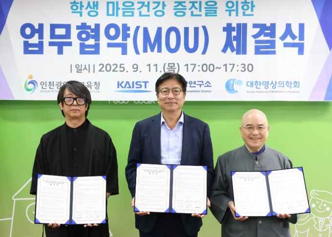 【뉴스라이트 = 이세현 기자】 인천광역시교육청은 11일 KAIST 명상과학연구소, 대한명상의학회와 ‘학생 마음건강 증진을 위한 업무협약’을 체결했다.