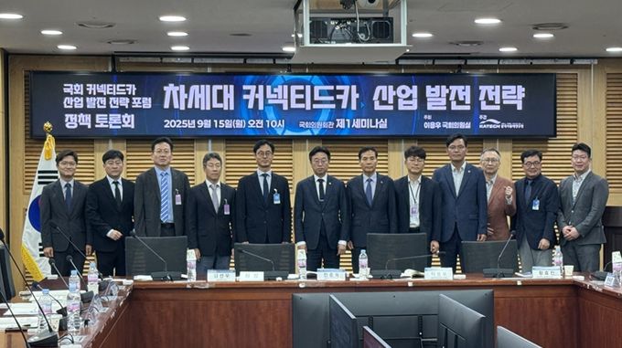 【뉴스라이트 = 이세현 기자】 차세대 ‘커넥티드카’ 산업발전 전략 정책 토론회가 9월 15일 국회의원회관 세미나실에서 개최됐다. 이번 토론회는 한국자동차연구원 주관으로 열렸으며 이용우 국회의원과 황효진 글로벌도시정무부시장 등 주요 인사들이 참석한 가운데 진행됐다.