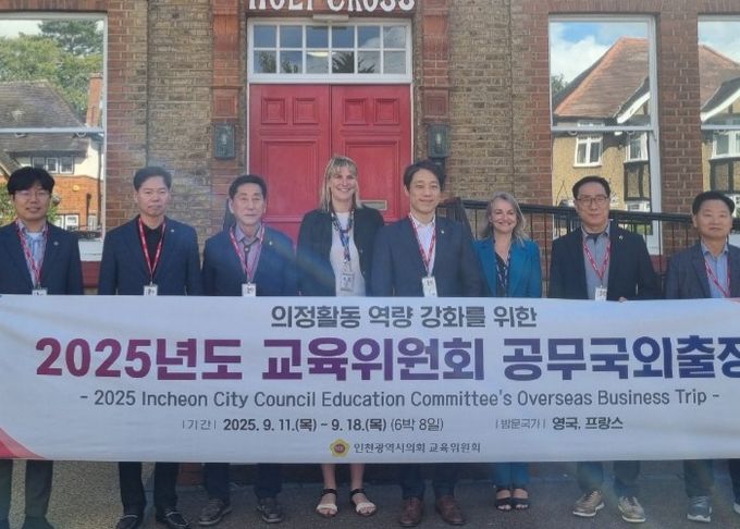 영국 출장에서는 교육위원회 의원 6명 등 총 10명의 대표단이 참여하며, 홀리크로스 스쿨, 뉴 몰든 공공도서관 등을 방문했다. 각 기관 방문으로 교육 혁신과 지역사회 중심 학습 모델을 직접 체험하고, 우수 사례를 인천 교육정책에 반영할 예정이다.