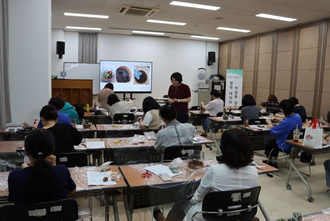 이번 힐링 프로그램에 참여한 종사자들은 “식물을 좋아하는데 집중해서 테라리움을 만드니 오히려 스트레스가 해소되는 것 같다. 같은 재료를 사용해도 모두 다른 작품이 나온다는 점이 흥미로웠고, 무엇보다 나 자신에게 주는 선물 같았다”며 소감을 전했다.