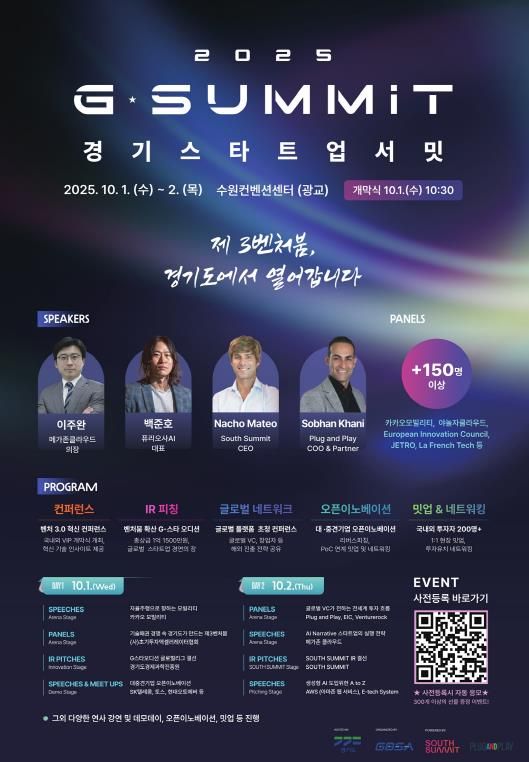 【뉴스라이트 = 조용은 기자】 국내 최고 수준의 글로벌 스타트업 투자 박람회인 ‘경기 스타트업 서밋(G-SUMMIT)’이 오는 10월 1일부터 2일까지 수원컨벤션센터에서 열린다.