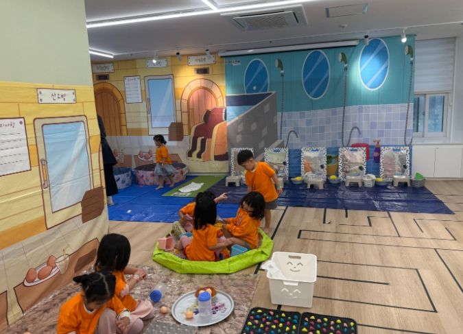센터 이용 아이들은 찜질방 콘셉트의 역할놀이와 공예·게임 활동을 통해 생활 속 예절과 감각·소근육 발달을 자연스럽게 익혔다. 아이들은 ‘찜질방 목욕놀이’에서 목욕 순서와 안전 수칙을 자연스럽게 익히며 기본 생활 습관을 다지고, ‘찜질방 빙고게임’을 통해 규칙을 이해하고 친구들과 협력하는 과정을 통해 또래 간 협동심을 키웠다.