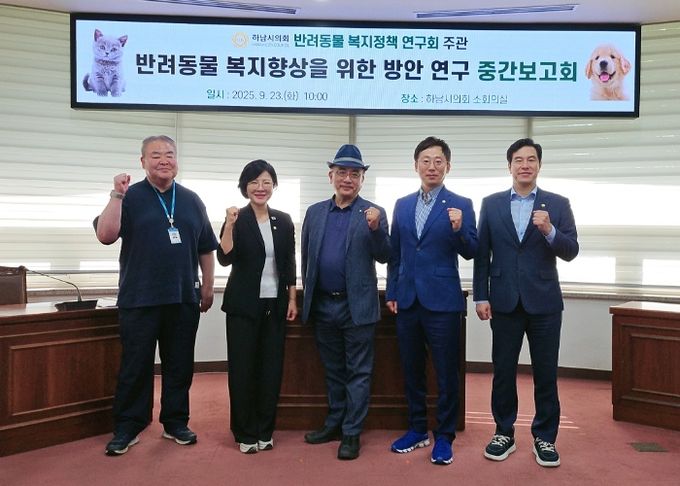 【뉴스라이트 = 김정민 기자】 하남시의회 의원연구단체 ‘반려동물 복지정책 연구회’는 23일 오전 10시 의회 소회의실에서 연구용역 중간보고회를 개최했다.