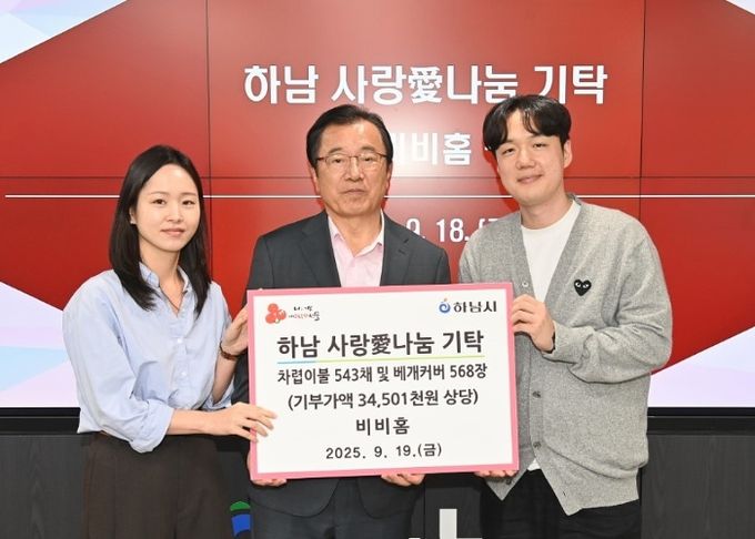 【뉴스라이트 = 김정민 기자】 지난 19일, 침구 제조·판매업체 비비홈은 하남시 관내 어려운 이웃들을 위해 차렵이불 543채, 베개커버 568장 (34,501천원 상당)을 기탁하며 기탁식을 가졌다.