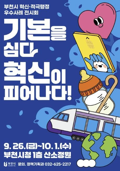 【뉴스라이트 = 이세현 기자】 부천시는 9월 26일부터 10월 1일까지 6일간 부천시청 1층 산소정원에서 ‘혁신‧적극행정 우수사례 전시회’를 연다. 이번 전시회는 ‘기본을 심다, 혁신이 피어나다!’를 주제로, 부천시가 시민의 행복과 소통을 중심으로 실천하는 혁신행정을 소개하기 위해 마련됐다.