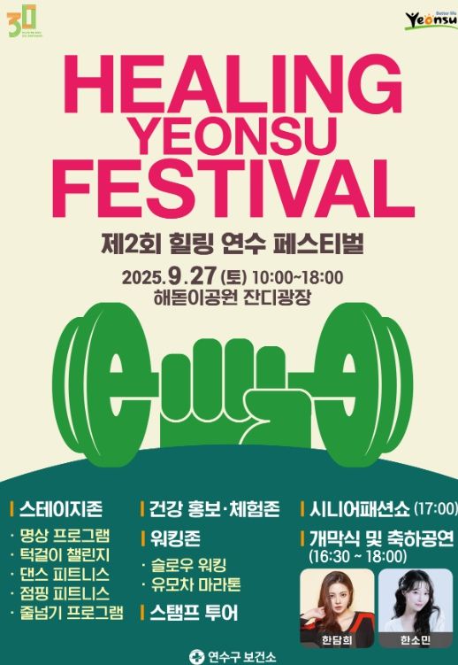 어린이들을 위한 풍선 아트 공연과 벼룩시장도 준비됐으며. 오후 3시부터는 연수구 출범 30주년 퍼포먼스와 시니어 패션쇼, 축하공연이 이어져 축제 분위기를 한껏 끌어올릴 예정이다.
