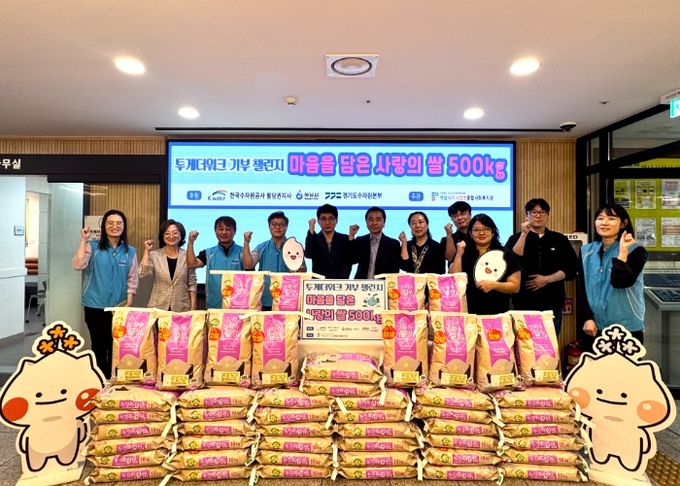 【뉴스라이트 = 김정민 기자】 한국수자원공사 팔당권지사는 지난 24일 민족의 대명절 추석을 맞아 사회공헌사업의 일환으로 ‘투게더워크’ 기부 챌린지를 통해 모인 성금으로 하남시미사강변종합사회복지관에 200만원 상당의 ‘사랑의 쌀’ 500kg을 전달했다.