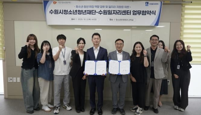 【뉴스라이트 = 조용은 기자】 수원시청소년청년재단과 수원일자리센터는 10월 2일, 청소년청년의 취업 역량 강화와 일자리 지원을 위한 업무협약(MOU)을 체결했다.