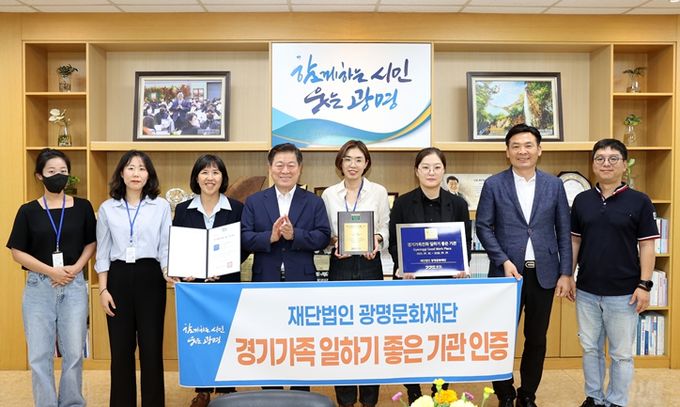 【뉴스라이트 = 이양지 기자】 (재)광명문화재단은 가족친화적인 조직문화 조성과 복지 제도 운영의 우수성을 인정받아, 경기도로부터 ‘2025년 가족친화 일하기 좋은 기업’ 인증을 받았다.