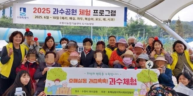 【뉴스라이트 = 조용은 기자】 수원시 권선구 호매실동 지역사회보장협의체는 지난 20일, 저소득 홀몸 어르신들을 모시고 과수 체험(사과 따기)에 나섰다. 이번 행사는 관내 홀몸 어르신들의 우울감 등을 예방하고 사회적 관계망을 만들기 위해 진행됐다.