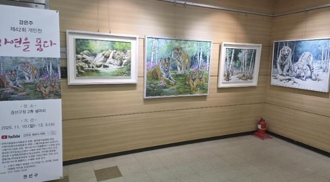이번 전시회의 대표 작품인 ‘봄봄’은 역사 속 존재했던 한반도의 호랑이가 인간의 욕심으로 현재는 멸종동물인 안타까운 현실을 조망하고 여전히 우리 곁을 지켜주는 호랑이를 통해 자연의 아름다움을 보여준다.