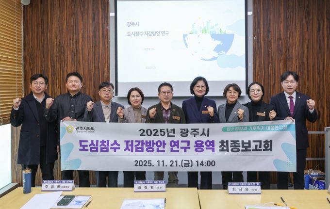 【뉴스라이트 = 김정민 기자】 광주시의회 탄소중립과 기후위기 대응연구회는 21일 ‘광주시 도심침수 저감방안 연구 용역’ 최종보고회를 열고 기후위기 시대 도시안전 강화를 위한 정책방향을 제시했다.