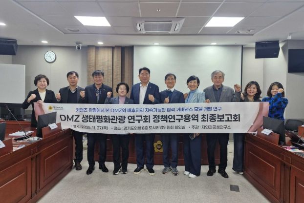 【뉴스라이트 = 조용숙 기자】 경기도의회 의원연구단체인 DMZ생태평화관광 연구회(회장 오준환 의원)는 지난 27일 경기도의회 도시환경위원회 회의실에서 '커먼즈 관점에서 본 DMZ와 배후지의 지속가능한 협력 거버넌스 모델 개발 연구' 용역 최종보고회를 개최했다.