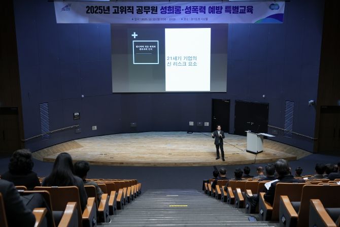 【뉴스라이트 = 조용은 기자】 경기도는 22일 경기도청 다산홀에서 김동연 경기도지사를 포함해 고위직 공무원 약 50명을 대상으로 ‘직장 내 성희롱·폭력 예방 특별교육’을 실시했다.