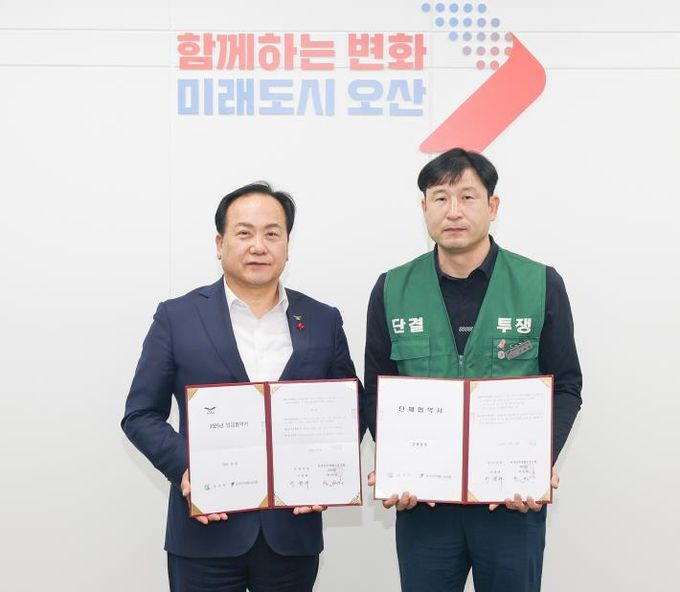 안재형 전국민주연합노동조합 오산지부장은 “대화와 신뢰를 바탕으로 협약을 체결하게 돼 의미 있게 생각한다”며 “앞으로도 공무직 근로자의 처우가 지속적으로 개선될 수 있도록 상호 존중 속에서 원만한 노사관계를 이어가길 바란다”고 전했다.