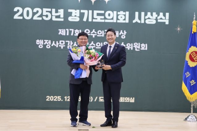 【뉴스라이트 = 조용숙 기자】 경기도의회 교육기획위원회 이택수 의원(국민의힘, 고양8)과 성기황 의원(더불어민주당, 군포2)이 26일 열린 2025년 경기도의회 시상식에서 ‘2025년 행정사무감사 우수위원’으로 선정됐다.