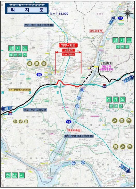 【뉴스라이트 = 조용은 기자】 국가지원지방도 86호선 와부~화도 4.3㎞ 구간이 5년 8개월 동안의 공사를 마치고 13일 전격 개통된다.