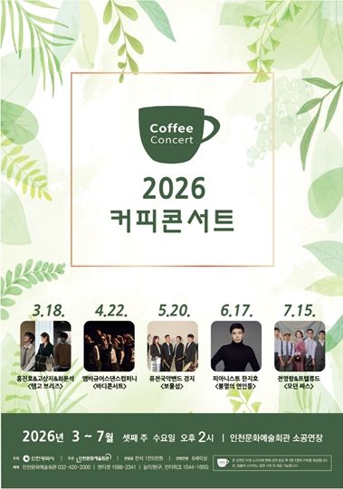 【뉴스라이트 = 이세현 기자】 인천문화예술회관(관장 홍순미)이 간판 브랜드 공연 〈커피콘서트'의 2026년 상반기 출연진을 공개한다.