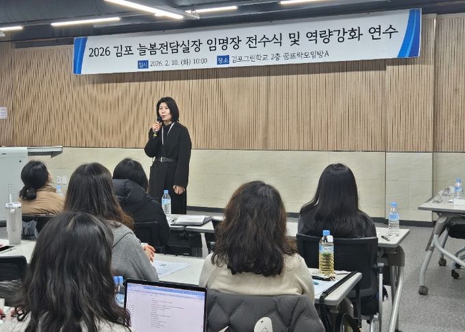 【뉴스라이트 = 이세현 기자】 경기도김포교육지원청은 2월 10일 2026 늘봄전담실장 25명을 대상으로 임명장 전수식과 함께 초등 방과후·돌봄 교육 운영의 전문성 및 현장 대응 역량 강화를 위한 ‘2026 늘봄전담실장 역량강화 연수’를 실시했다.