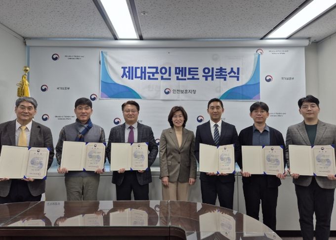 【뉴스라이트 = 이세현 기자】 국가보훈부 인천보훈지청 제대군인지원센터는 2월 10일 정부인천지방합동청사에서 먼저 사회에 진출하여 성공한 제대군인을 분야별로 멘토로 선정하는 “2026년 제대군인 멘토 위촉식 및 간담회”를 진행했다.